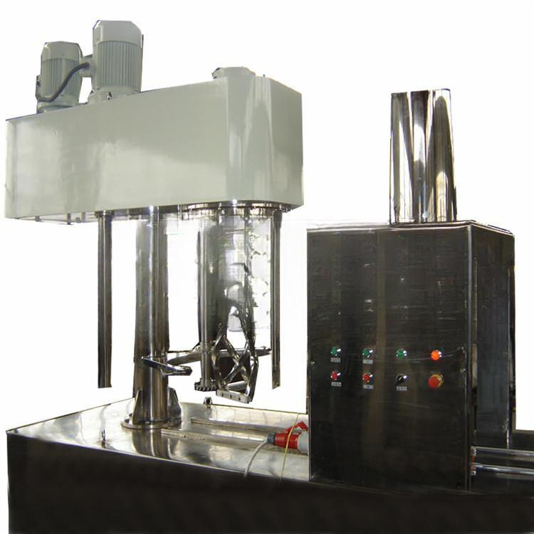 小型行星搅拌机是由低速搅拌器和高速分散器组合而成的,具备了良好的混合、反应、分散、溶解作用,特别适合从粉体到高黏度、高密度的物料溶解、混合、混炼、反应工艺。由于双行星搅拌机具有的输出扭矩,特别适用于粘度性比较大的产品,比如胶黏剂、硅胶、锂电池浆料等;可以根据不同生产工艺及物料特点选择不同的搅拌桨(如:麻花框式、多桨叶式),增加刮壁刮底、温控、真空等多种功能。