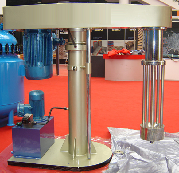 料,具有非常显著的分散混合效果,通过液压泵工作驱动液压柱塞升降,带动整个传动机构和研磨装置升降。